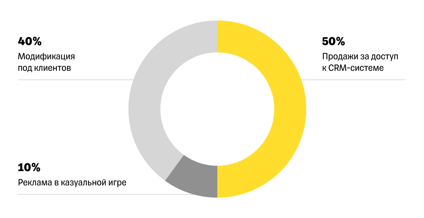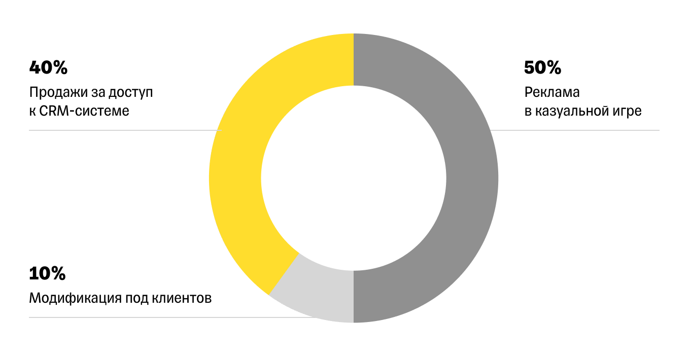 Доля выручки не подходит. Спустя год «Сеновал» перестал получать заказы на разработку и модификацию CRM‑систем. Зато компания стала получать больше предложений на покупку рекламы в мобильной игре. В итоге структура выручки изменилась.