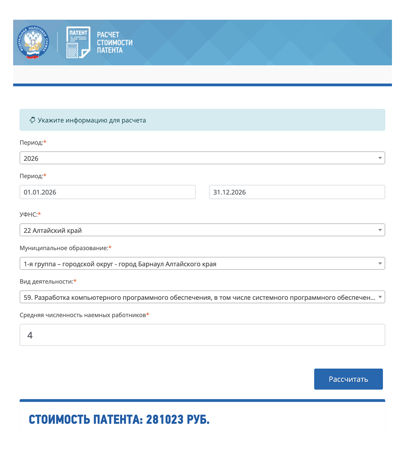 Сравним, сколько стоит патент на год работы для разработки ПО в Москве, Санкт‑Петербурге и Барнауле.