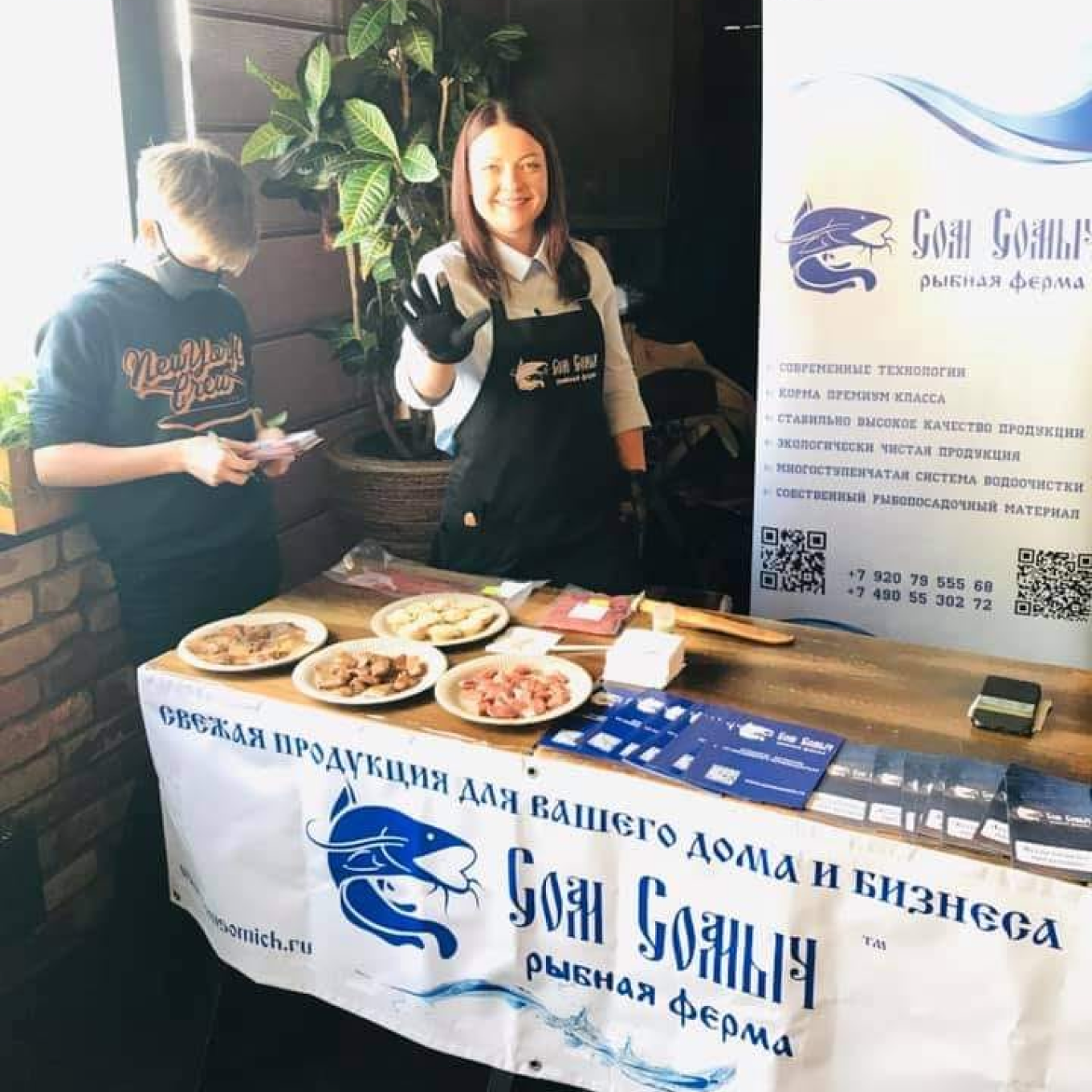 Участвуем в ярмарках. С продажей в розницу те же проблемы, что и с ресторанами — клариевого сома мало кто знает. Наша задача — разрушить стереотипы про «костлявых и вонючих» сомов. Для этого мы участвуем в ярмарках, где предлагаем попробовать рыбу.