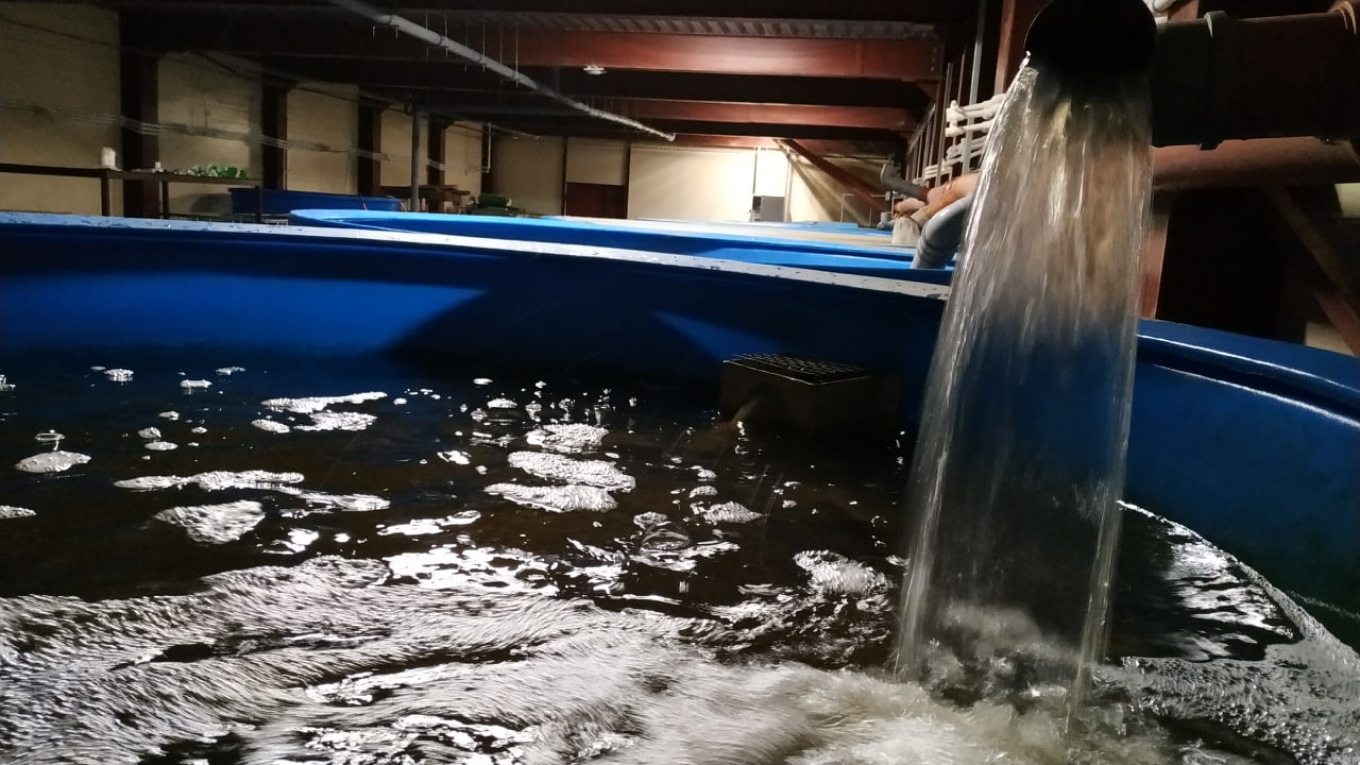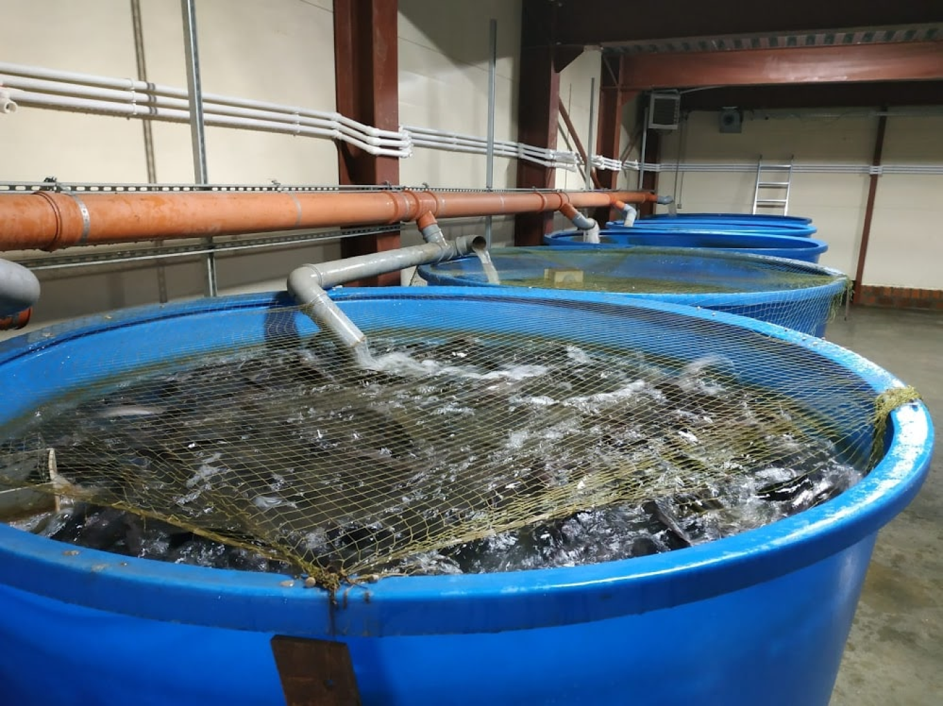 Одна УЗВ состоит из 8 баков по 5 тонн каждый. Мы помещаем в один бак 2,5 тонны рыбы единовременно. Это много: например, в такой бак войдет всего 250 кг осетровых рыб.